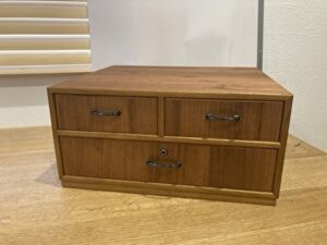 オイル仕上げ タンス中段と下段はそのまま修理しています。タンス上段の材料を使い、小引き出しと小箱を作りました。