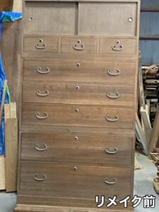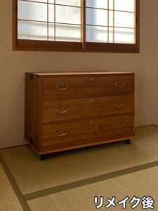 タンス上段と台輪はそのまま利用し、オイル仕上げの桐タンスにしています。